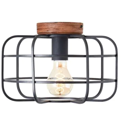 Brilliant Gwen Plafondlamp Metaal Hout Zwart | 300mm - Geschikt voor 1x E27