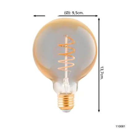 Eglo LED Globe E27 Filament Amber 4W 245lm - 820 Zeer Warm Wit | Dimbaar - Vervangt 25W