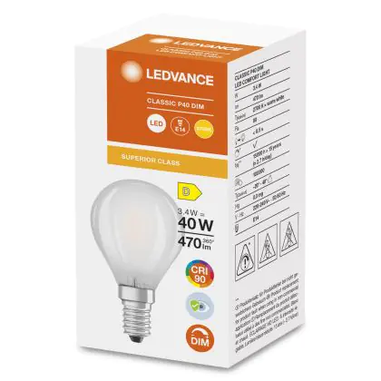 Ledvance Superior Classic LED E14 Kogel Mat 3.4W 470lm - 927 Zeer Warm Wit | Dimbaar - Beste Kleurweergave
