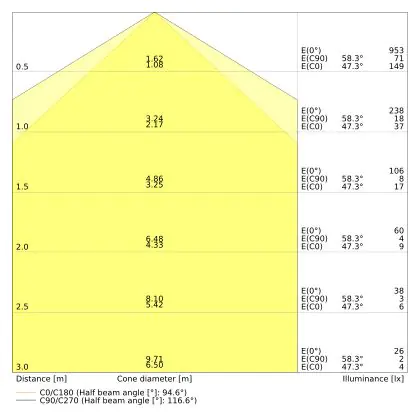 De kleurcode is een combinatie van de kleurweergave (CRI) en lichtkleur (Kelvin). Het eerste getal is de kleurweergave (1 = zeer slechte kleurweergave, 9 = maximale kleurechtheid). Het tweede en derde cijfer betreft de lichtkleur. Een lamp met kleurcode 830 heeft bijvoorbeeld een goede kleurweergave en straalt een warm wit licht uit (3000K), waar een lamp met de kleurcode 940 een uitstekende CRI heeft en een koel wit licht (4000K) uitstraalt. |